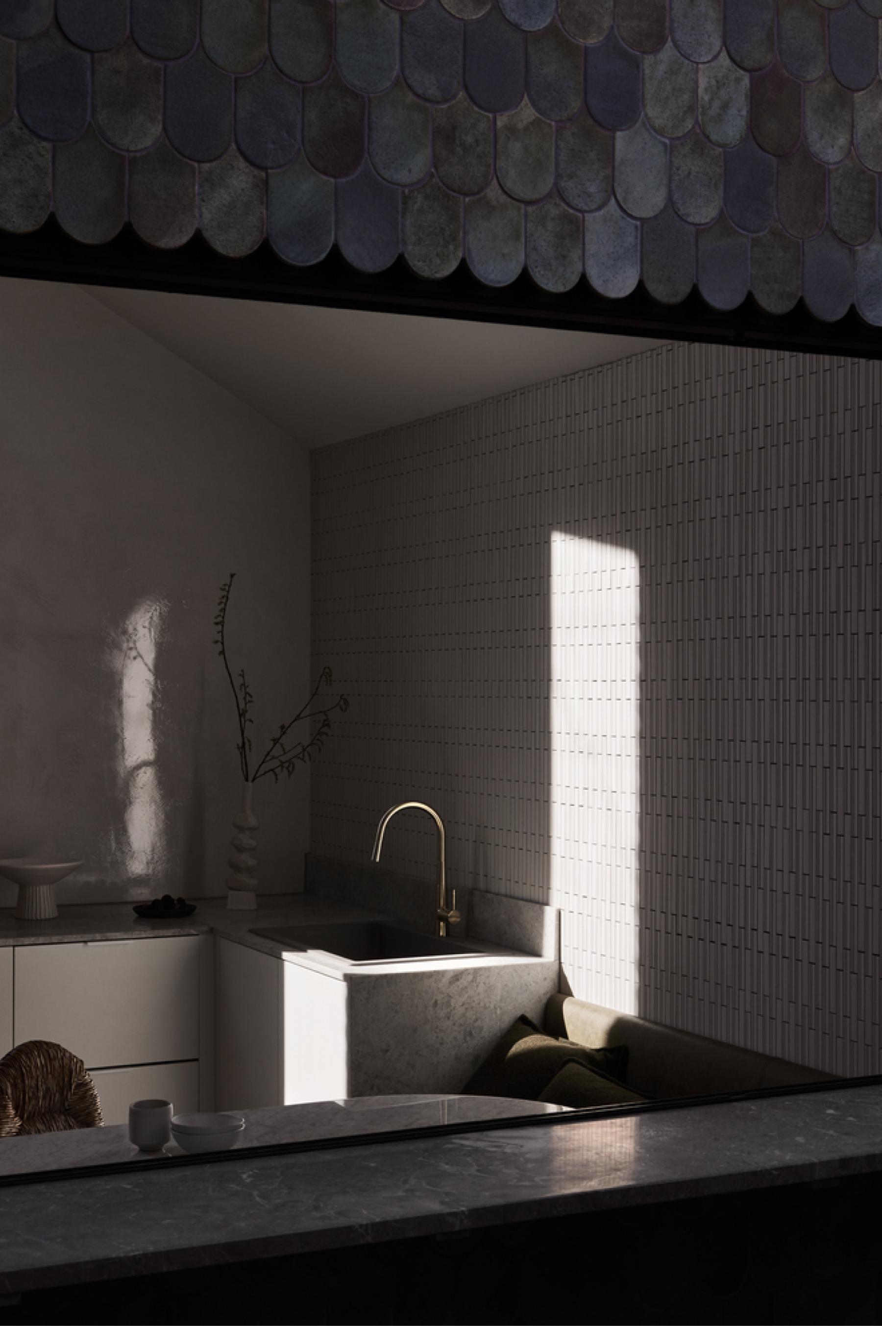74 Claredon Street Quarry House is a highly collaborative project between the client, architect and builder aimed at transforming a worker's cottage in Northcote into a modern, three-bedroom family home. The design embraces high level architectural ambitions whilst being a warm and comfortable family home. Inspired by the client's love for honest architecture and mid-century modern style, the extension features a blend of natural materials like concrete, masonry, and spotted gum timber defining key areas such as the living room, kitchen, and multipurpose room.